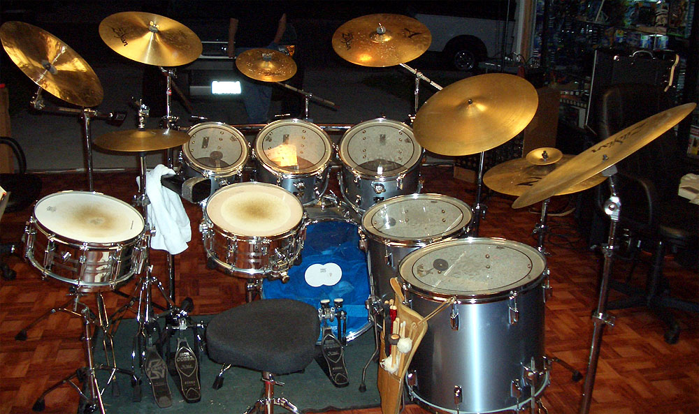 22" bass drum, 10x9", 12x12", 13x13" rack toms, 16x18" and 18x18" floor toms